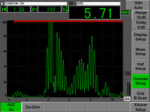 開發腐蝕模塊功能的目的是為進行基本腐蝕檢測的操作人員提供一種快速、簡便的解決方案。這個功能與多種業內領先的Olympus雙晶探頭相兼容,其中包含D790探頭。選擇好適當的探頭后,腐蝕模塊會對脈沖發生器/接收器的設置進行智能性調整,以保證得到超聲檢測的最佳效果。可以自動對測量閾限和增益進行調整,從而可使操作人員在極少動手調整設置的情況下立即得到厚度測量讀數。操作人員使用了這個功能后,就不再需要像以往一樣,為保持測量的穩定性及避免幾何形狀發出的干擾性回波,而對閘門的起始、寬度和水平進行不斷地調整了。EPOCH 600腐蝕模塊功能還可以(簡便地)進行回波到回波測量。