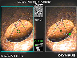 立體測量技術可以精確地以任意目標角度對缺陷進行三維測量。檢測時,用戶可以輕易的測量缺陷的尺寸和深度以及侵蝕、腐蝕和損壞的面積。對缺陷進行大量的檢測計算可使檢測結果更可靠。