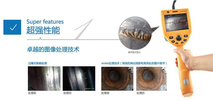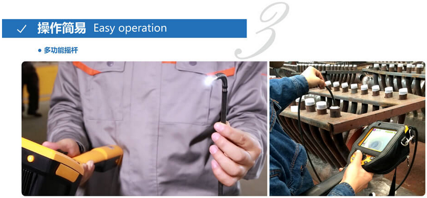 C50電控高清工業內窺鏡運用長距離信號傳輸及導向傳動技術,支持插入管7米,并且轉角可達120°,這一技術突破可以充分運用在管道、集箱或大型設備中。