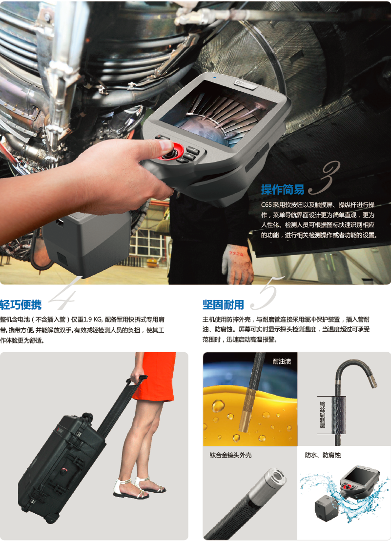 2、可更換不同直徑和長度插入管,檢測人員可根據現場情況快速更換不同直徑、不同長度、不同景深的插入管,實現一機多用,以最少的成本滿足更多的現場需求;